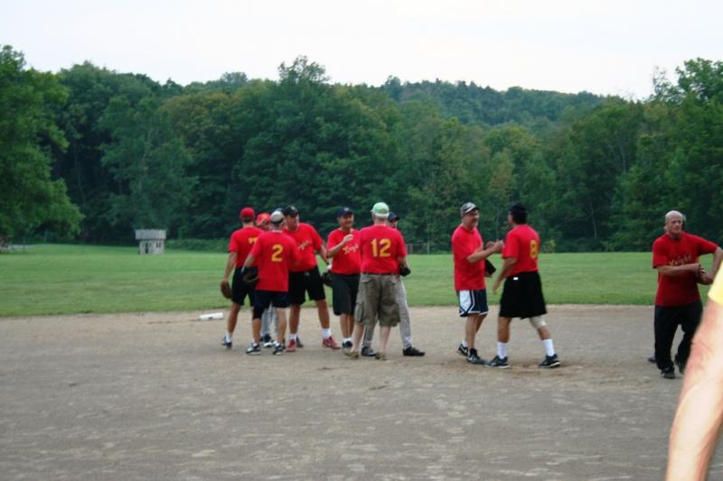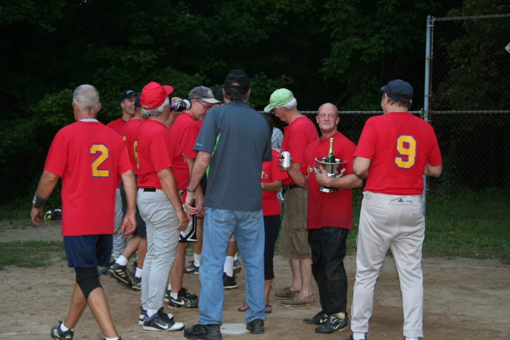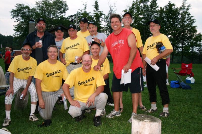 Bottom Row: Rich Nassoiy, Mike Hallinan, Grant Pieniazek (batboy) Pia Kirkpatrick, Jim O'Brien and Mike Baetzhold (Missing from picture - Tom McQuillan & Mike Smith)