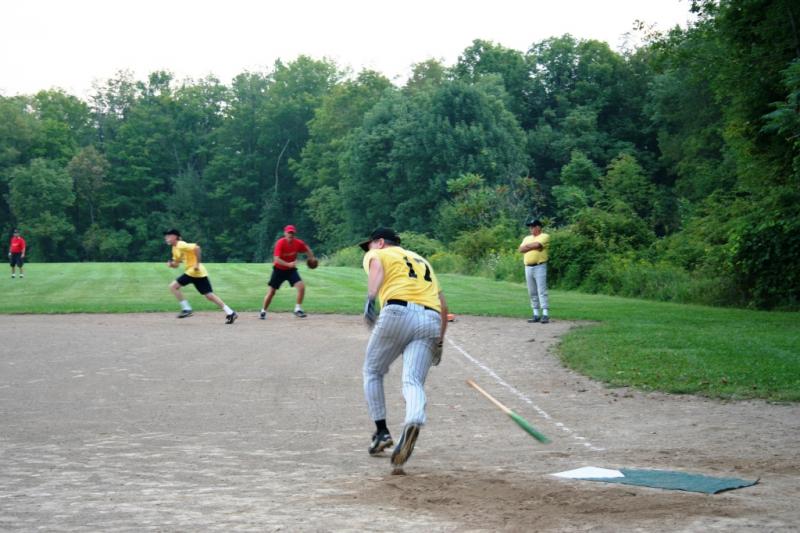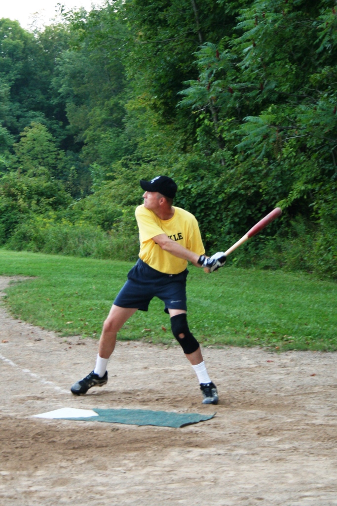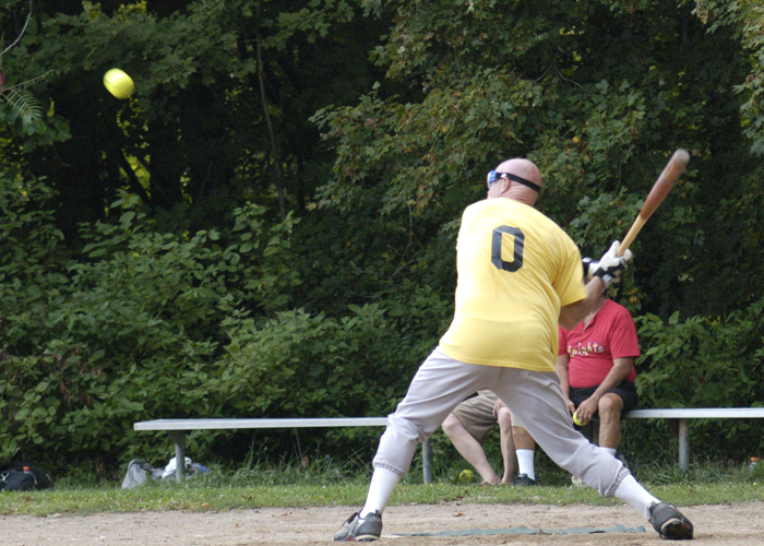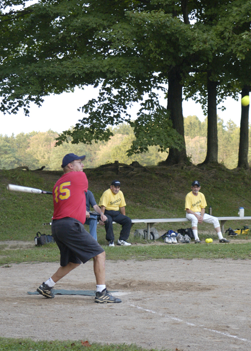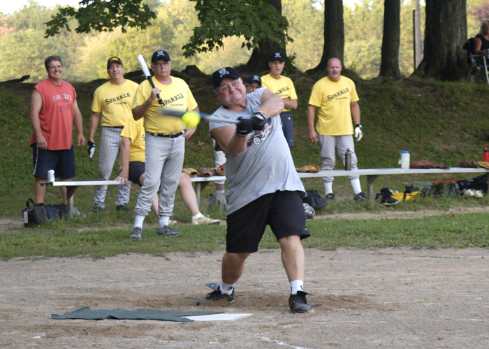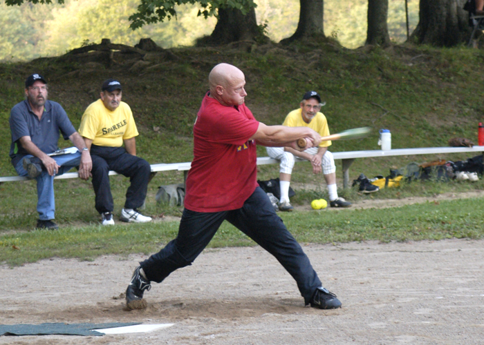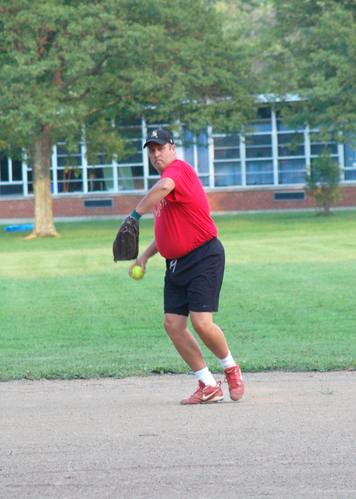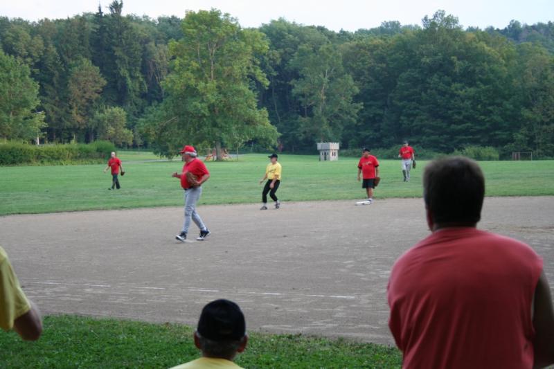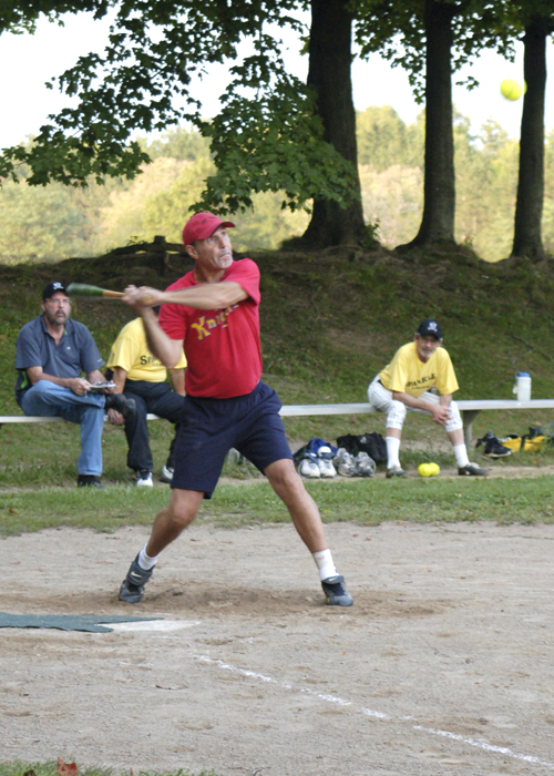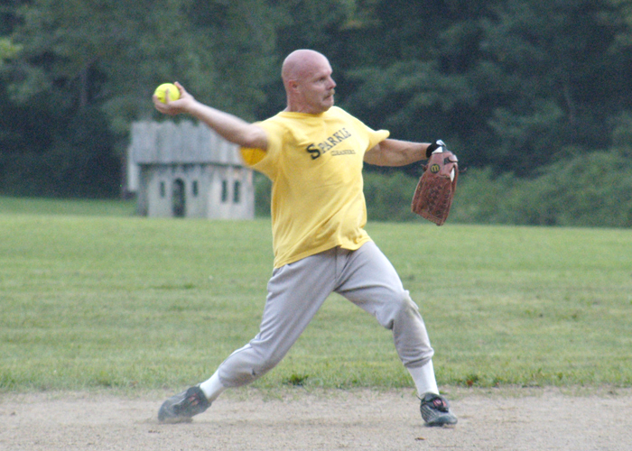 Denny Collins on the hill for Lunetta's with Mike Hallinan pitching for the Knight's below