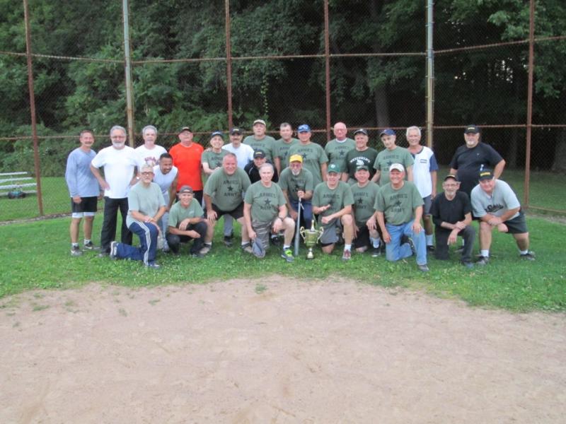 The Glory Days Wood Bat Softball League completed the 2014 season by awarding Championship trophies in the 50+ and 60+ Divisions after exciting final games at J.P. Nicely Memorial Park in West Falls. The Wallenwein’s Dudas, managed by Rick Ohler, won the 50+ crown while Arnie’s Army coached by Arnie Walker captured the title in the 60+ Division.